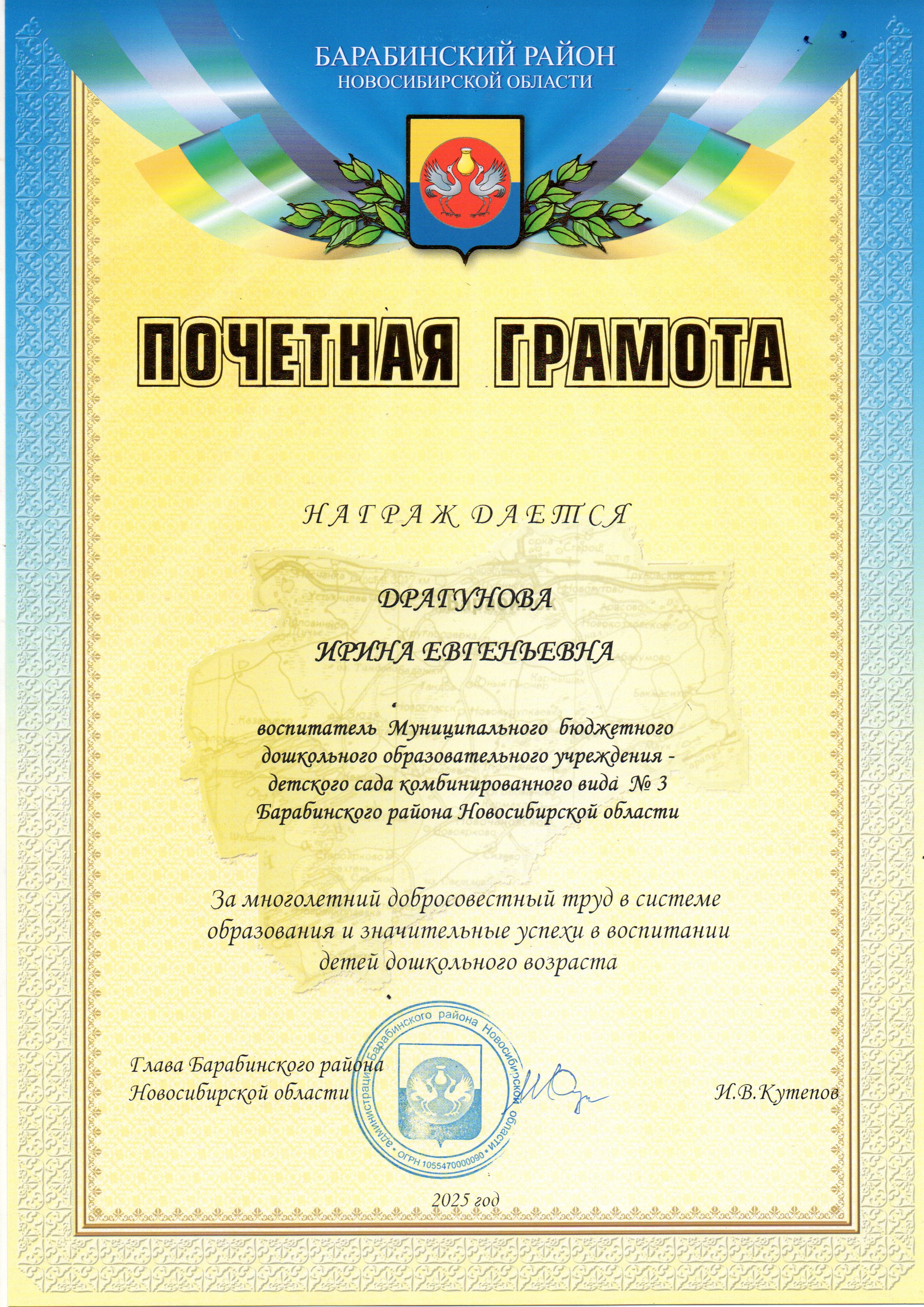 Почетная грамота Барабинской районной организации профессионального союза работников народного образования науки Российской Федерации